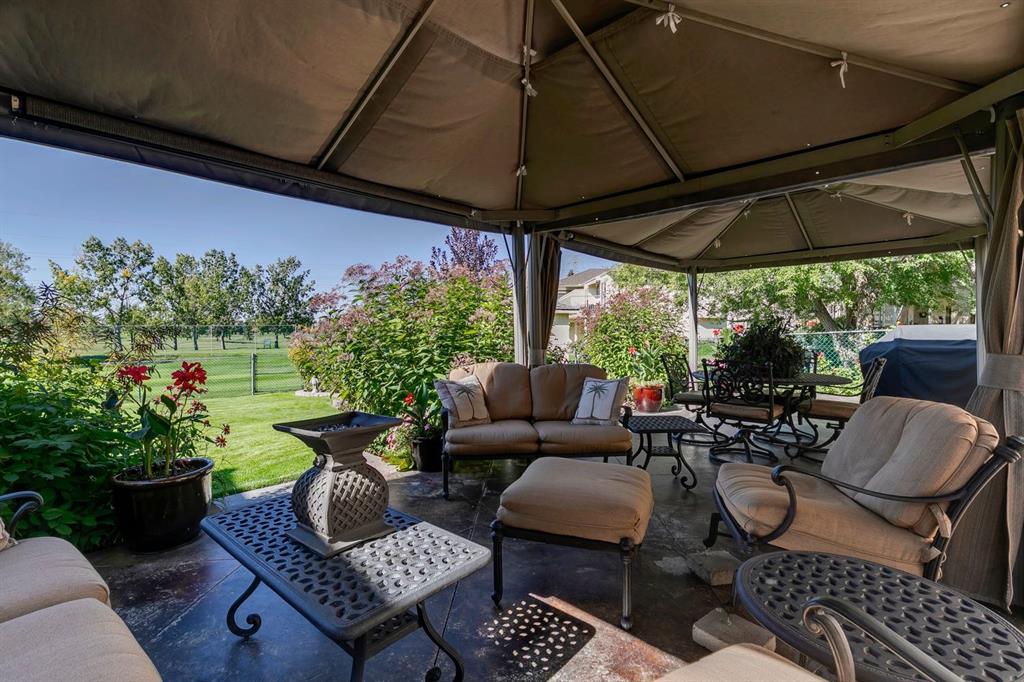 Step outside and be captivated by the impressive outdoor space, complete with a 9-zone underground sprinkler system and water lines for flower pots, ensuring hassle-free maintenance. The expansive patio, supported by 15 cement piles, provides an ideal setting for outdoor gatherings. Enjoy the convenience of a gas hookup for a BBQ, allowing for year-round grilling.
