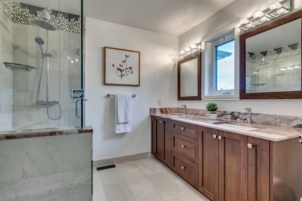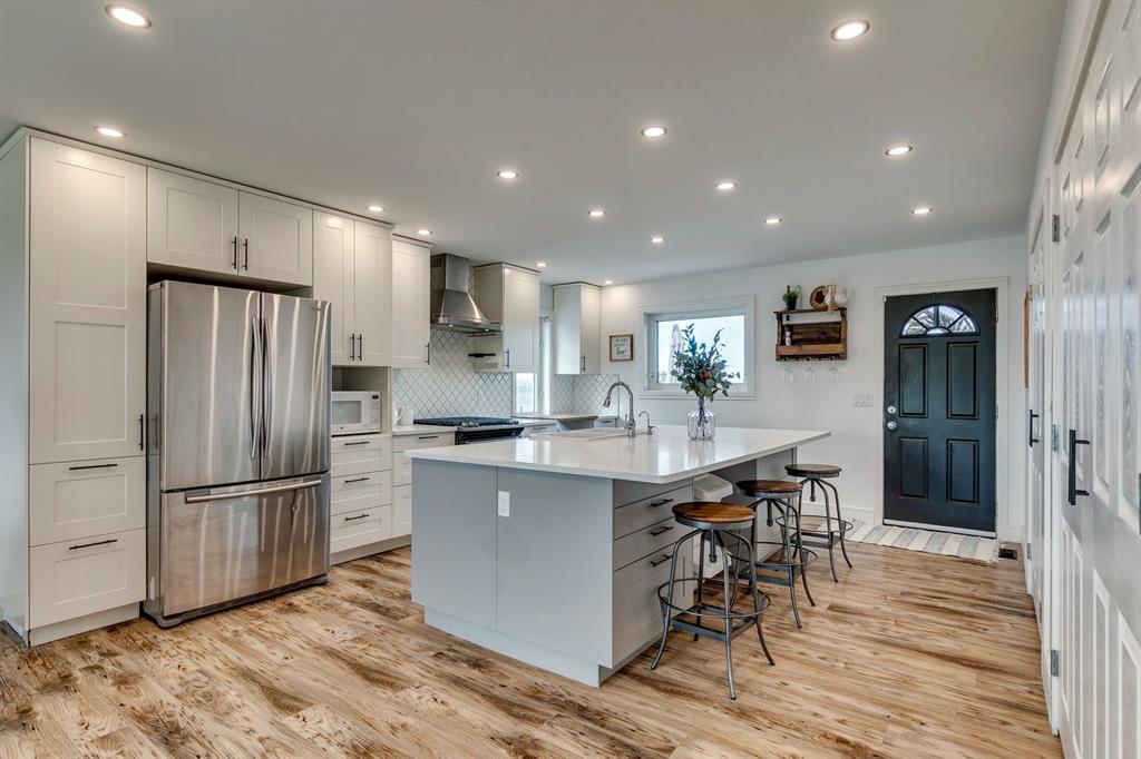 Step inside the spacious landing of this home and prepare to be amazed by the warm and welcoming atmosphere the recent renovations provide. The open living room, dining room, and kitchen on the upper level create an incredible space to entertain guests or relax with your family. The kitchen is a chef’s dream, featuring a gas stove, soft-close white cabinetry, a beautiful backsplash, and a massive quartz kitchen island with a farmhouse sink. Don’t miss the functional and charming butler pantry. This level also includes a convenient laundry closet to simplify your life. Indulge in the deluxe master retreat, complete with a walk-in closet and a stunning ensuite featuring an oversized shower, dual vanity, and in-floor heating. Two additional bedrooms and a fully updated 4-piece bathroom ensure that nothing is lacking.
