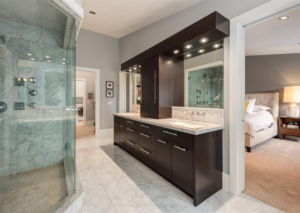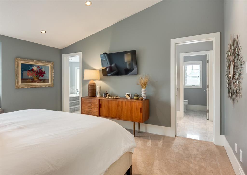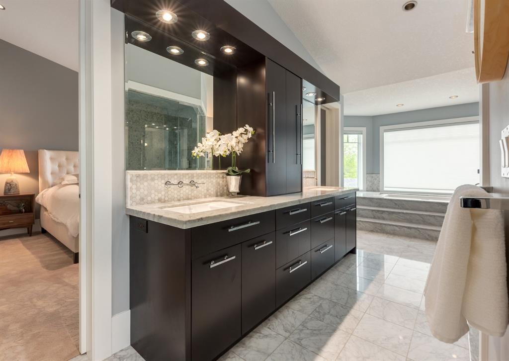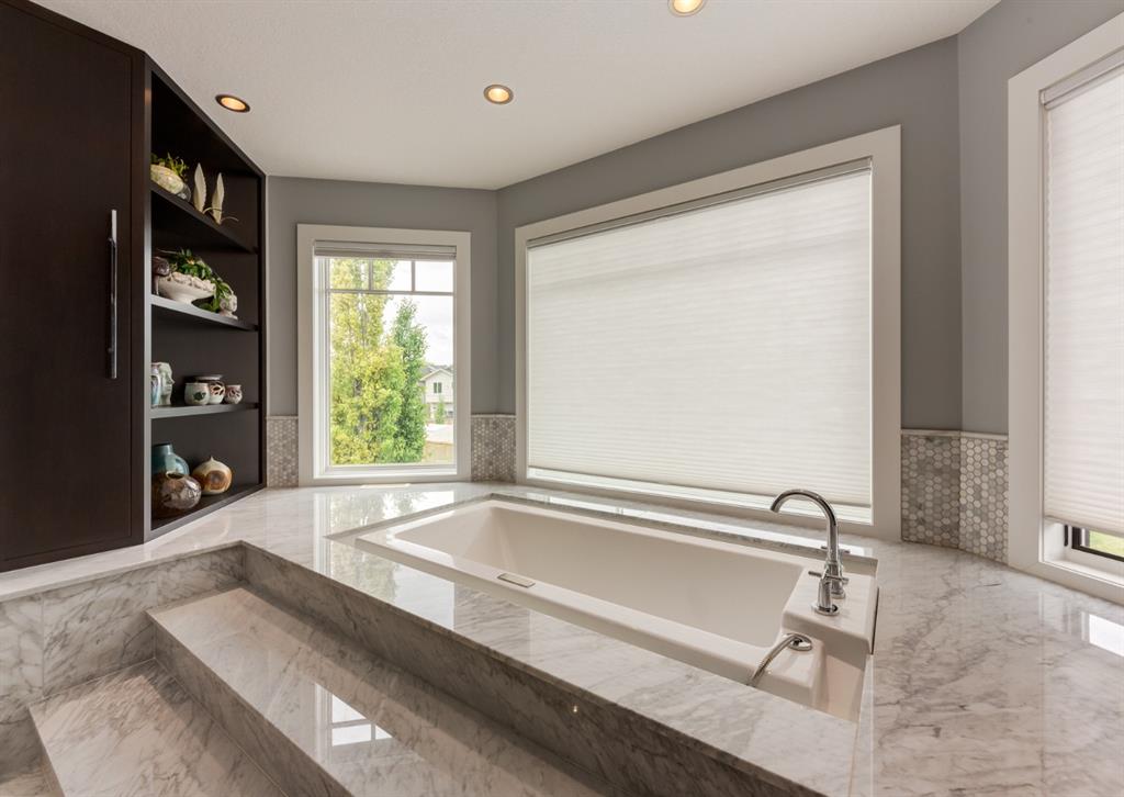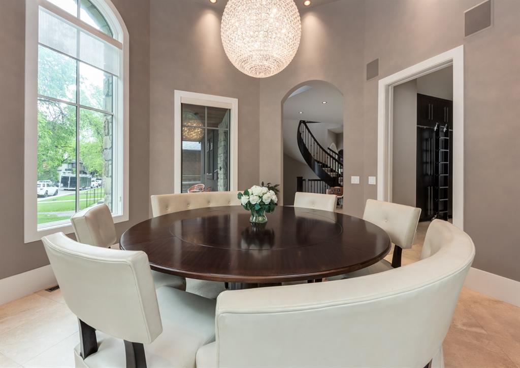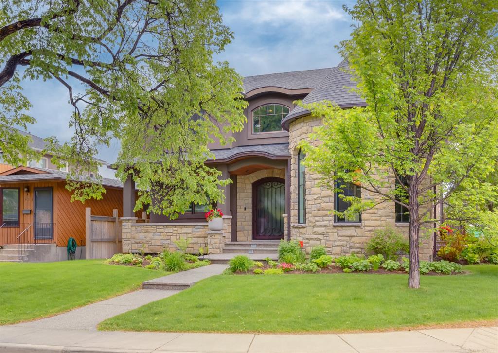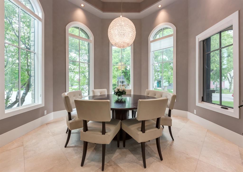 With its palatial Limestone facade and striking details at every turn, this beautiful custom home on one of Mount Pleasant’s most desirable streets combines luxury with comfort. Charmingly situated on a corner lot with south-facing backyard and beautiful perennial gardens, each bespoke detail is a testament to pride of ownership and an homage to tasteful design. Walk through the custom iron door imported from Arizona and behold an elegant foyer with two-storey ceilings, stunning spiral staircase and sun-filled rooms that boast an open floor plan perfect for entertaining. The incredible turret houses the formal dining room with 16 ft. ceilings and the Swarovski crystal globe chandelier bathes the room in magical rainbow reflections. Walk through the butler’s pantry which boasts custom rolling ladder, full floor to ceiling built-in cabinetry, Electrolux freezer and separate wine fridge. The incredible chefs kitchen showcases stainless steel appliances, crisp quartzite countertops, two dishwashers (Fisher & Paykel and Miele), gas range, double wall ovens, Miele refrigerator and massive island with seating capacity for up to 8. The living room features coffered ceilings, gas fireplace and built-ins. Walk outside, where a low-maintenance outdoor oasis and detached triple car garage awaits. Cozy up to the outdoor gas fireplace and spend summer evenings under the stars, wine in hand. Additionally on the main floor is a two piece powder bathroom and office off the foyer which boasts full built-in bookcases. Upstairs, the thoughtful landing guides you to the master suite, with window seat overlooking south views, soaring ceilings and access to the opulent ensuite bathroom that truly takes your breath away. The classic marble encased space (with in-floor heat) will never go out of style, nor will spa-evenings at home where you can spend hours in the sunken builtin soaker tub. The oversized shower, makeup station, dual vanities and attached walk-in closet bring additional luxurious convenience to getting ready in the morning. Walk through the closet to your full laundry room with additional storage and linen closets. There are 2 more spacious bedrooms and a full 5-piece bathroom on the upper floor. Downstairs, the basement with 9 ft. ceilings is the perfect place for lounging and the fulltheatre room will become your weekend go-to spot, where you watch all of Hollywood’s finest films. The additional bedroom, 4-piece bathroom and walk-in closet is the perfect space for guests or teenagers wanting privacy. Store your wine collection in the wine cellar. Additional details of this home include custom pocket doors throughout, built-in surround sound, 10 ft. ceilings on the main floor, Hunter Douglas window coverings, heated flooring in the upstairs bathrooms, laundry room and the basement bathroom, pot lighting, upgraded copper JELD-WEN windows, travertine and marble tile flooring, dual furnaces, vacuflow, central air-conditioning, irrigation system, and so much more.