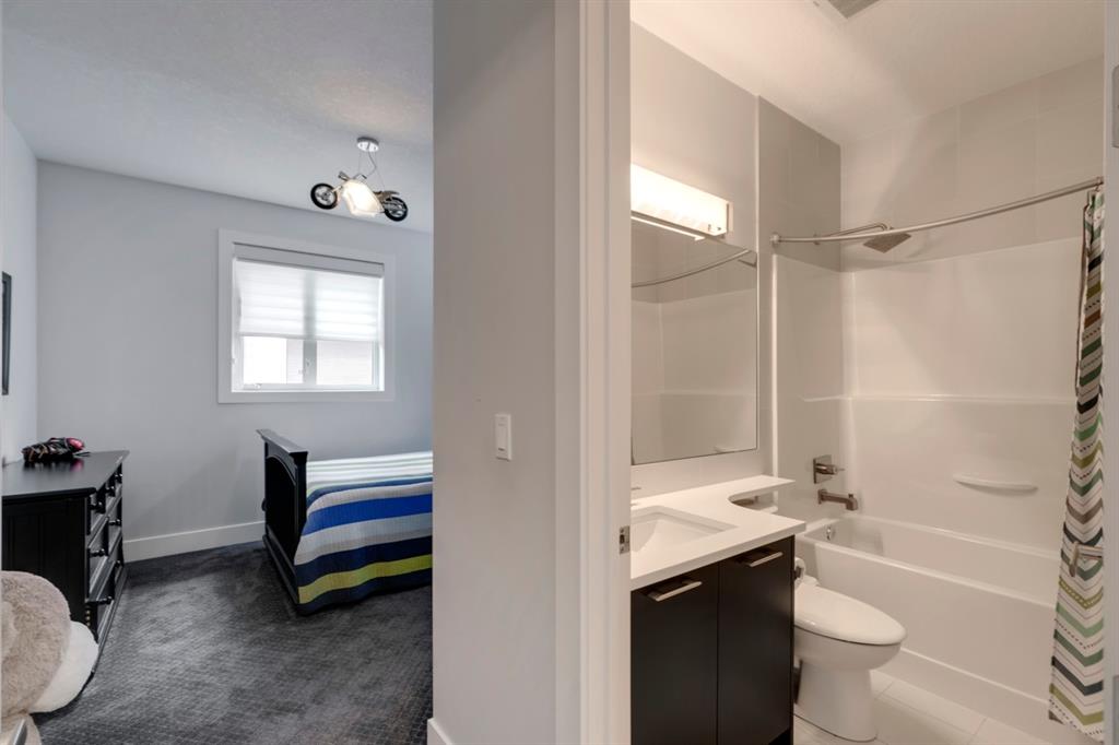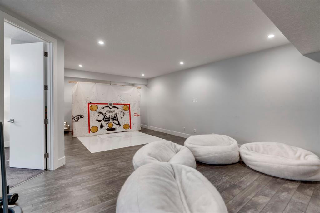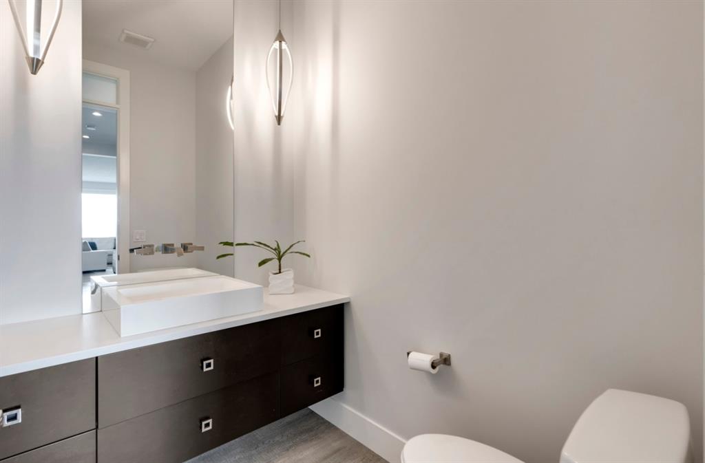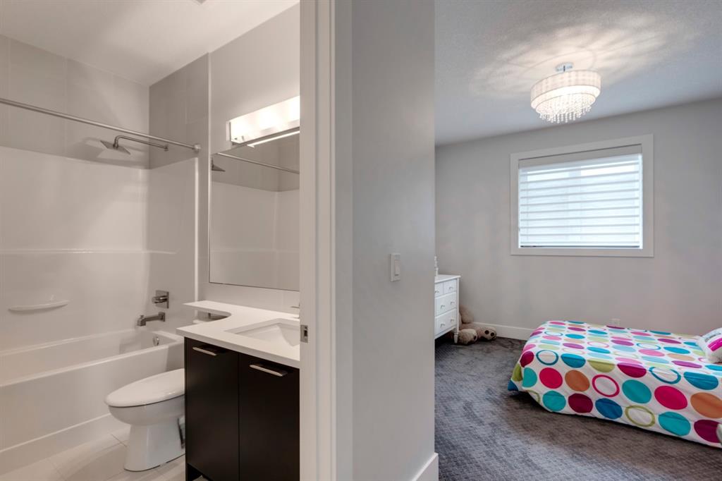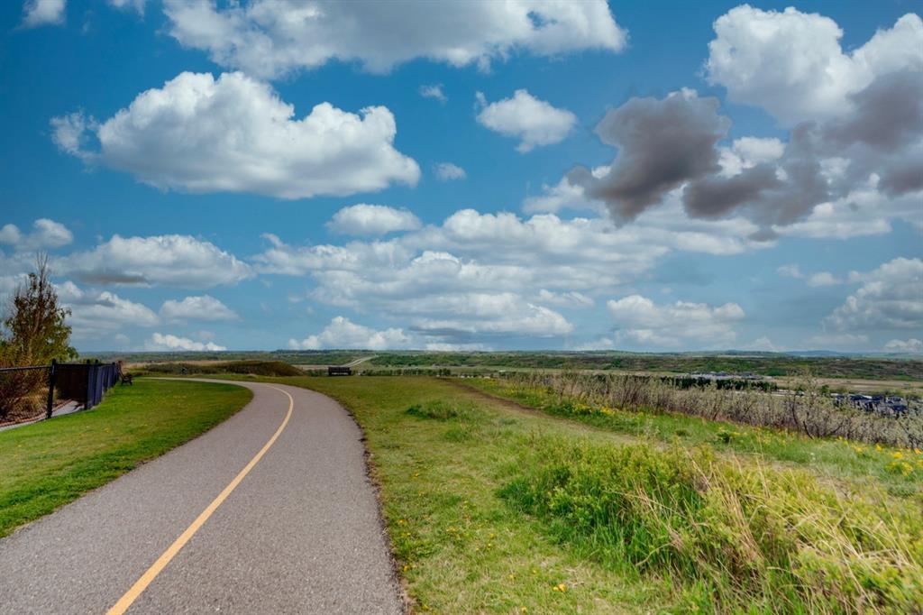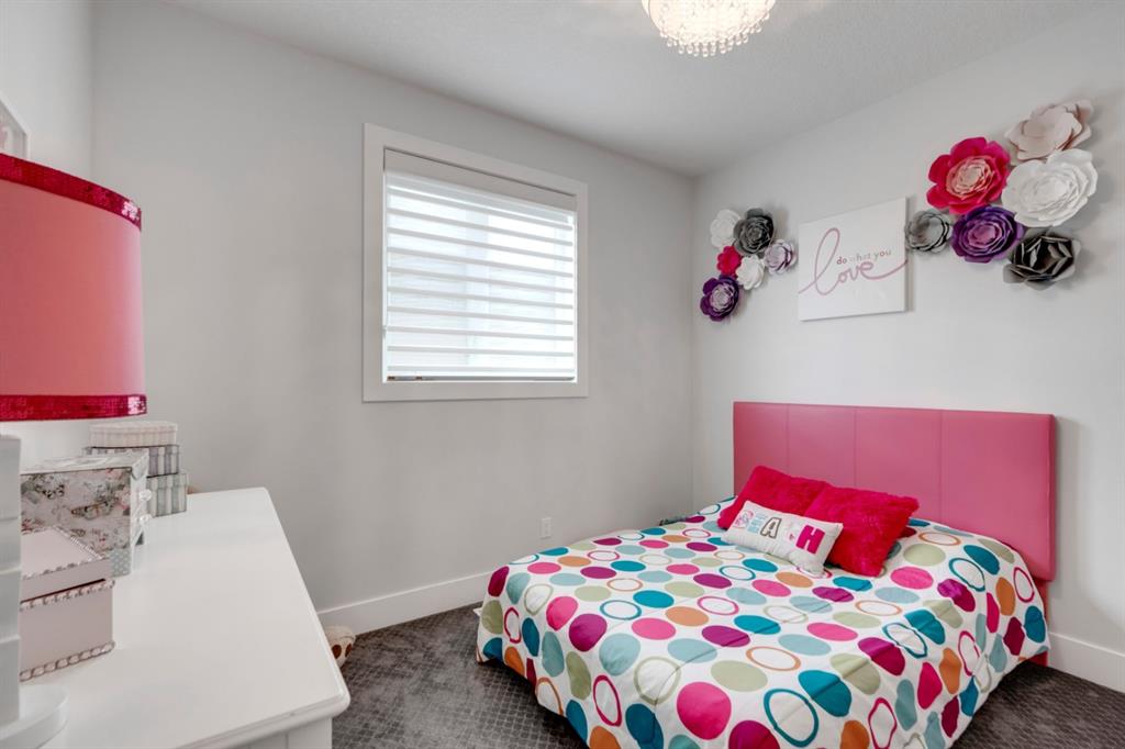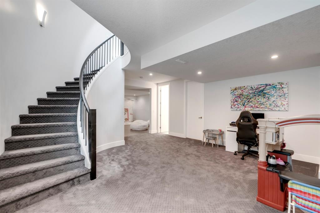 This exquisite luxury home sits perched on the gorgeous ridge of Cranston overlooking the river valley with panoramic mountain views. Enjoy sunshine filled days and stunning sunsets from your main floor walk-out home, moving from your indoor entertainment space to the outdoors seamlessly. The kids will adore the in-ground trampoline and you’ll appreciate the unobstructed view while they do! This custom home masterfully intertwines breathtaking natural surroundings with an abundance of windows paired with high quality, modern finishes. This architectural dream features a curved cat’s eye staircase as its centerpiece complimented by high ceilings and a stunning chandelier. Rustic wide planked hardwood floors lead from the entrance, past a functional mudroom with 5 lockers and a walk-in closet, a 2 pc bath and main floor office with built in stone desk, to the jaw dropping main living space with a wall of windows, chef’s kitchen with high-end appliances including induction stove, wall oven, steam oven, over-sized side-by-side fridge/freezer & even 2 dishwashers. Winding your way up to the master retreat where views for days impress. The ensuite includes a soaker tub, separate vanities, make-up desk and even a steam shower. The walk-in closet even has a built-in jewellery stand. Bedrooms 2 & 3 have walk-in closets & private ensuites. The bonus room is converted into a fabulous 4th bedroom. The convenience of an upper level laundry leaves nothing to be desired. The finished basement includes large recreation/media room, dedicated work out space, 5th bedroom & full bath. Additional interior features: blackout blinds in all bedrooms, hardwood with a 50 year warranty, Jenn Aire appliances, 8′ doors throughout, knockdown ceilings, 9′ ceilings in basement and upper floor, 10′ main floor, electric fireplace, floating vanities in all bathrooms, electrical in-floor heating in master & bedroom 2 ensuites, security system wired, 2 high efficiency furnaces with humidifiers, 2 hot water tanks, HEPA air filtration system, Kinetico water softener, built-in vacuum, central AC to upper floor, gas line to oversized garage with additional loft storage. Basement was professionally finished by the builder.Additional exterior features: hardy board, exposed aggregate border on driveway, triple glazed oversized windows, gas line to BBQ, quality Duradek and sunken trampoline.