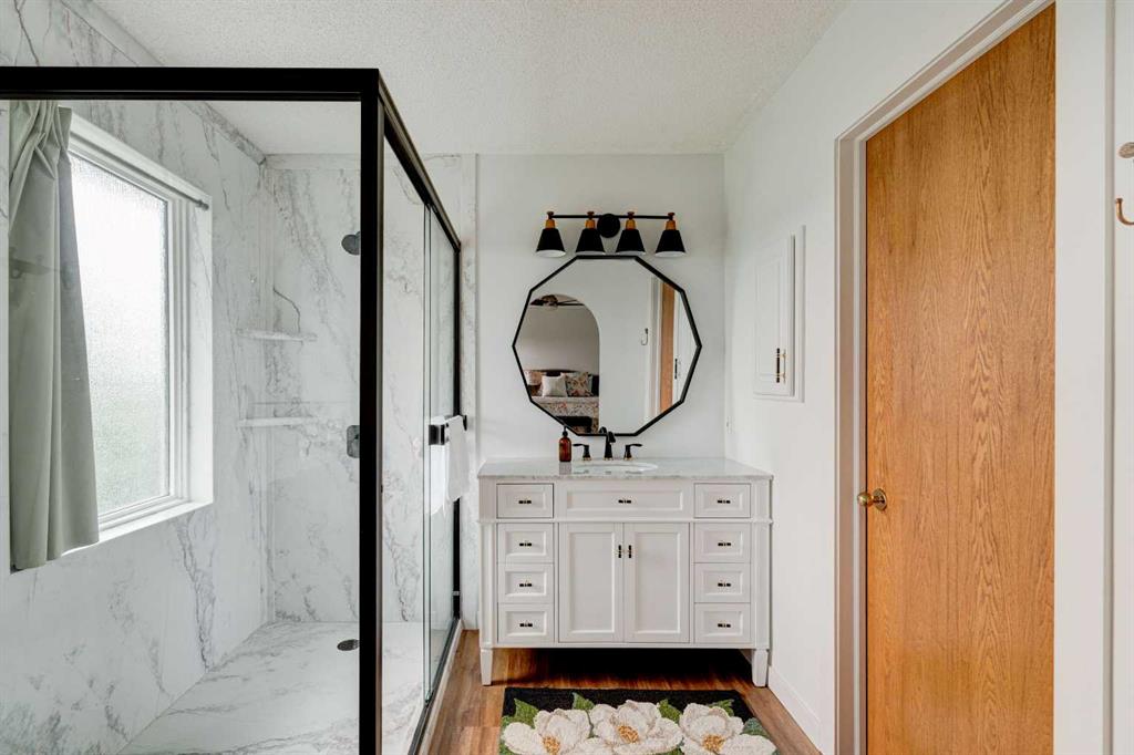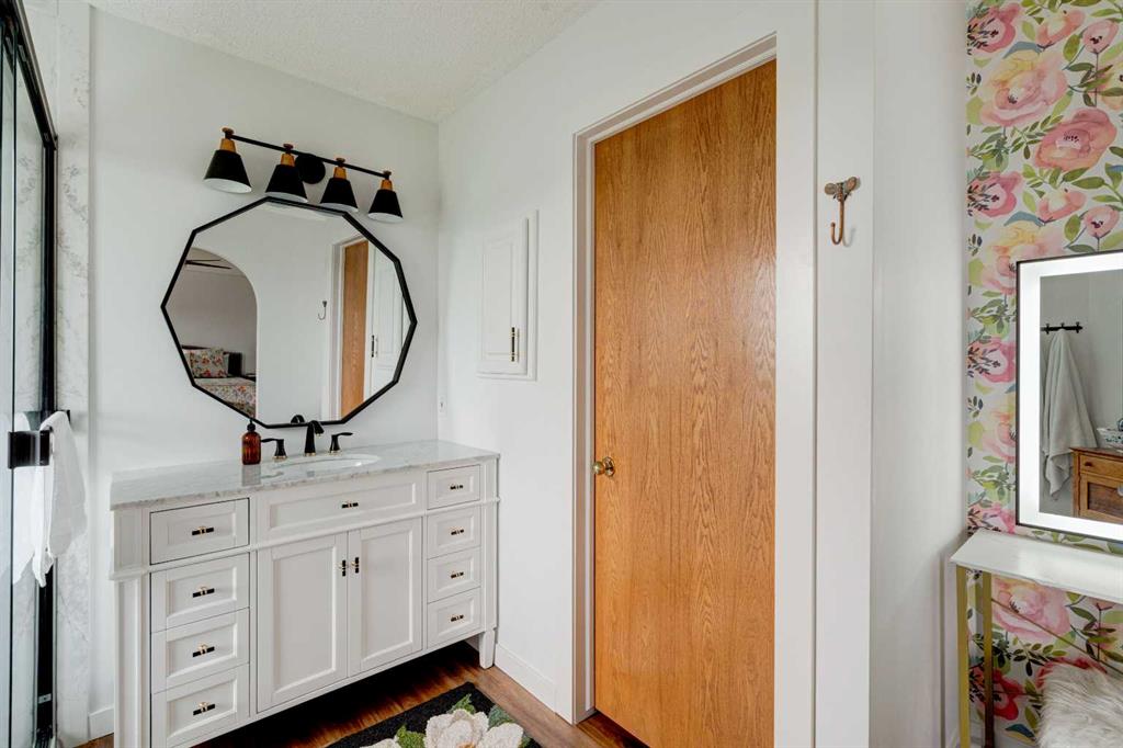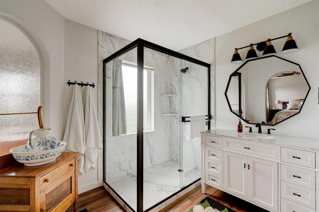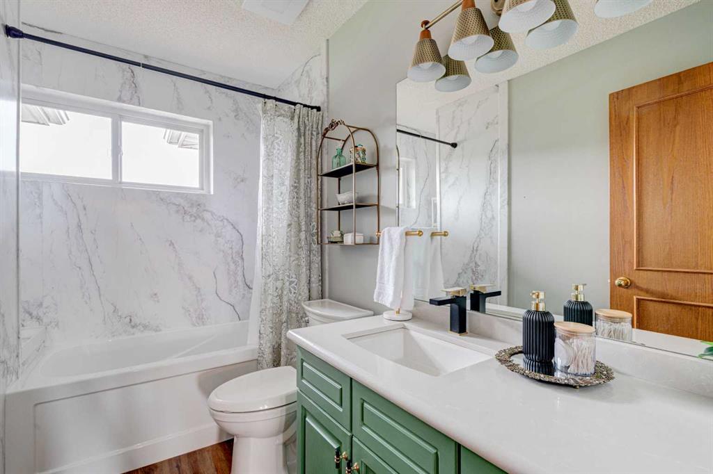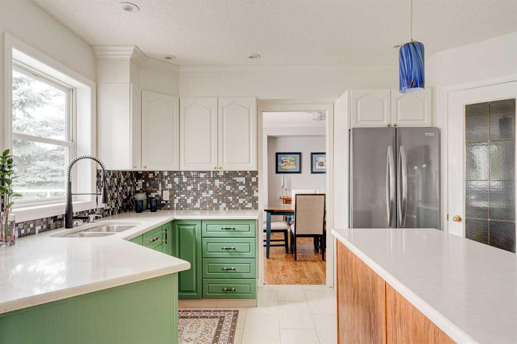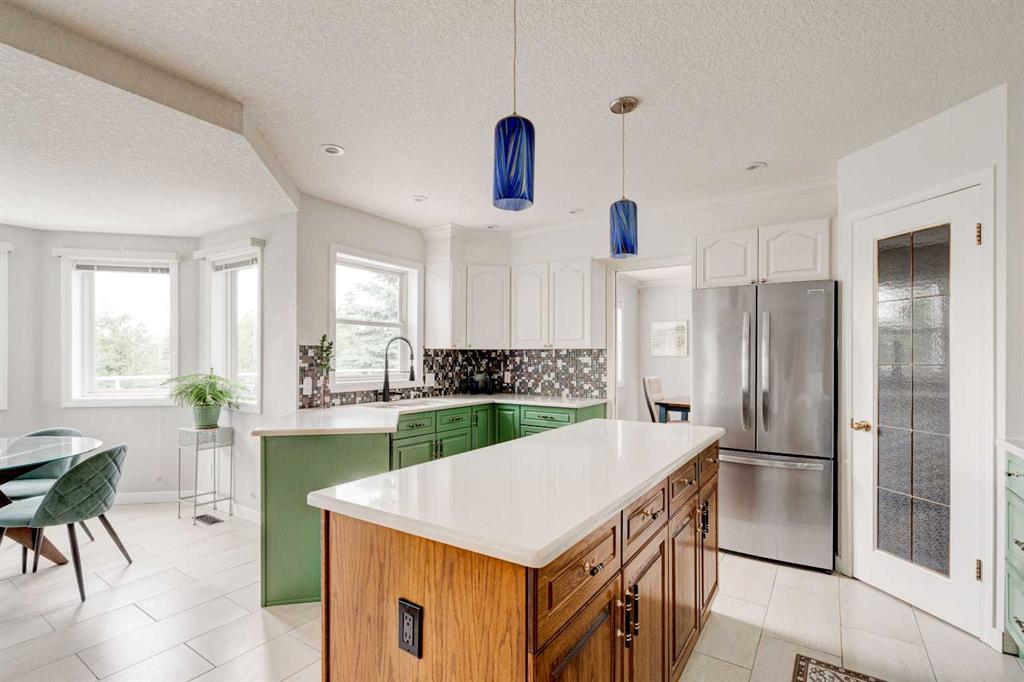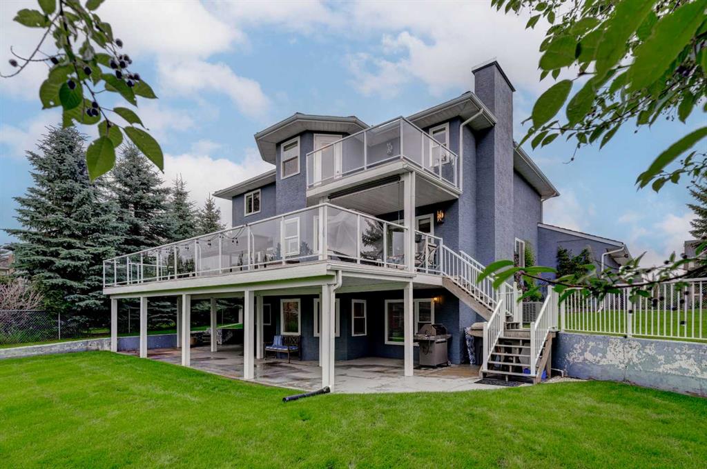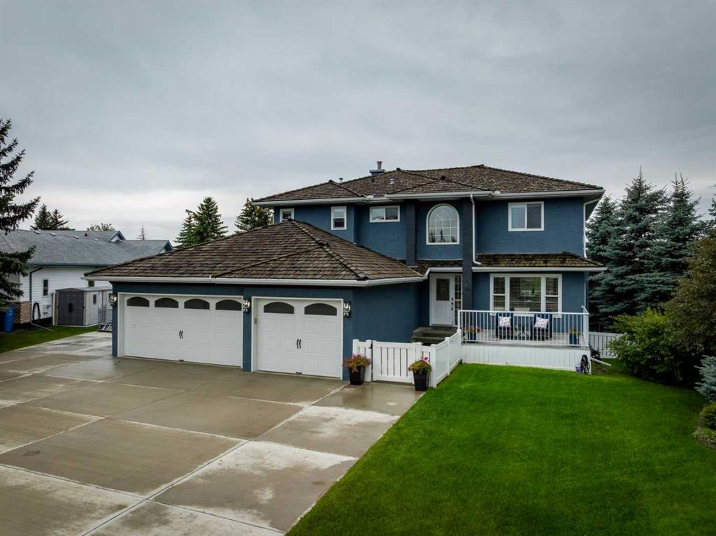 Nestled in a serene suburban neighborhood, this stunning 2-story home is a perfect blend of modern upgrades, thoughtful design, and timeless charm. Boasting a striking blue exterior with a durable pine shake roof, this property offers 6 spacious bedrooms, with the potential for a 7th, and a host of luxurious features. The upper level is a true retreat, featuring 4 generously sized bedrooms, including a large master suite. This retreat is a haven of relaxation, complete with a cozy seating area, access to the upper balcony, and a gorgeous, updated ensuite bathroom. The spa-like ensuite boasts modern finishes and thoughtful design, while the updated upper main bath ensures comfort and style for the rest of the family. The main floor is designed for both comfort and entertaining. A large family room with a fireplace creates a warm and inviting space to gather, while the updated kitchen is a showstopper. Featuring multi-tone cabinetry, new counters, new appliances and a stunning green, black, and gold palette, the kitchen is as functional as it is beautiful. A bright breakfast nook, bathed in natural light, offers the perfect spot for casual meals. For more formal occasions, the dining room—conveniently located off the kitchen—flows seamlessly into the living room, which features a wet bar for effortless entertaining. The main floor also includes an updated powder room, a full laundry room, and a dedicated office space that could double as a 7th bedroom, making it ideal for large families or those who work from home. The walkout basement suite is a standout feature, offering a fully self-contained living space. It includes a full kitchen, a comfortable living room, two bedrooms, and a bathroom, making it perfect for multi-generational living, guest accommodations, or even rental income. The basement is equipped with in-floor heating for year-round comfort, while the boiler system efficiently powers the blowers for the upper floors. Central air conditioning ensures the entire home stays cool during the summer months. The spacious 3-car garage is fully finished with epoxy flooring, heating, and equipped with new doors and openers, offering both style and practicality. The garage has been updated with a 100-amp panel, while the house itself benefits from a robust 150-amp system. The wide, extended concrete driveway provides ample parking for guests and easy access to the home. Outdoor living spaces abound, including a large front porch, a prominent second-floor balcony off the master suite with mountain and lake views, an expansive main-floor deck perfect for dining and relaxation, and a ground-level patio for additional entertaining. The property is wired for a hot tub, includes gas lines for grilling or outdoor heating, and features irrigation systems for both the front and back yards, ensuring the landscaping stays vibrant and lush. Surrounded by tall evergreen trees, vibrant shrubs, and a white fence enclosing the backyard, this 17,292 sf property has it all.
