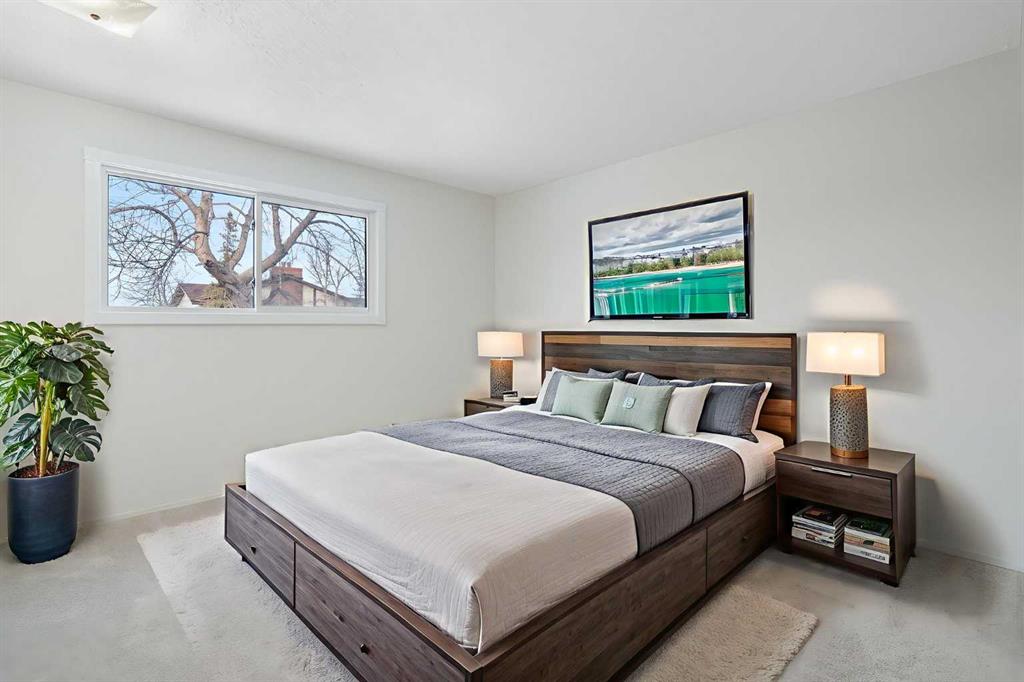 Welcome to this bright and well-maintained bungalow in Beddington Heights, one of Calgary’s family-friendly communities. It’s very rare to find a home at this price with a TRIPLE car garage, and a bungalow that’s move-in ready! This lovely updated home is just steps from schools, parks, playgrounds, and Beddington Towne Centre. Plus it’s close to the off-leash dog park, Nosehill Park, and Huntington Hills Community Association, this location offers outstanding convenience and an active community lifestyle. The house has all been recently freshly painted throughout plus brand-new carpeting too! The main level features two good-sized bedrooms, a 4-piece bathroom, and a warm, inviting living room highlighted by a wood-burning brick fireplace. A cozy dining area sits just off the kitchen, which offers ample cabinetry and a brand-new refrigerator. Fresh new paint and carpet enhance the home’s bright feel, while the new carpeting adds comfort and practicality throughout. The finished basement provides excellent additional living space with a rec room, third bedroom, 4-piece bathroom, along with a dedicated laundry room and storage area, ideal for guests, teens, or a home office. Notable upgrades include triple-pane Eco-Line windows (2017), a newer roof with ice & water shield and new attic vents (2021), furnace & A/C (2024), and central air conditioning for year-round comfort. Outside, enjoy the sunny south-facing backyard complete with a patio and gazebo, perfect for relaxing or entertaining. The TRIPLE detached garage is a rare find, offering outstanding parking and storage and the perfect space for hobbyists or mechanics. Located near shopping, transit, walking paths, community amenities, and quick access to major routes, this charming bungalow is perfectly suited for families, downsizers, or investors alike.